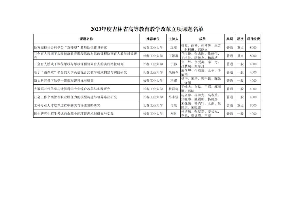 bat365中文官方网站-2023年度吉林省高等教育教学改革立项课题名单