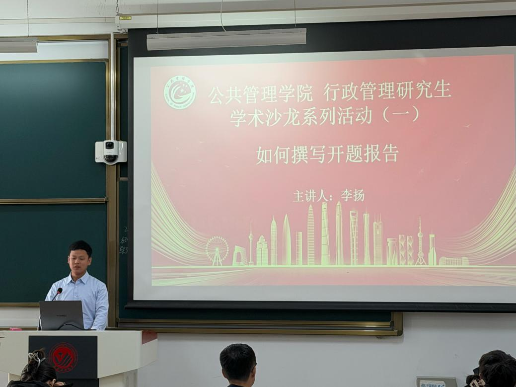 10月24日上午,行政管理系分论坛在东区主楼116教室开启首场“毕业论文开题”主题学术沙龙,邀请李扬老师作《如何撰写开题报告》专题分享。李扬老师结合多年科研与指导经验,围绕开题报告核心结构、研究背景凝练技巧、文献综述撰写方法及研究设计逻辑构建展开系统讲解。