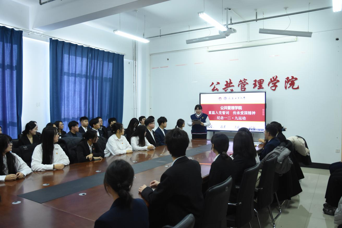 新闻网讯(通讯员 陈辛妮)为纪念“一二·九”运动九十周年,教育引导青年党员坚定政治信念、强化使命担当,12月9日中午,学院在北湖东区主楼402党员活动室组织开展老党员重温入党誓词、新发展党员入党宣誓仪式。会议由研究生第二党支部副书记陈辛妮主持,学生党员代表、新发展党员、入党积极分子代表参会。