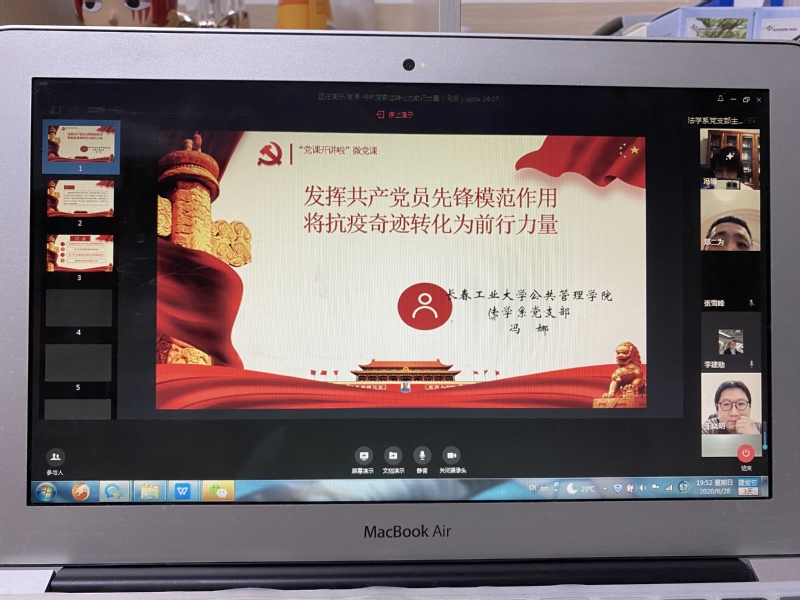 根据省委组织部及省委教育工委相关工作要求,根据学校关于组织“党课开讲啦”活动的工作部署,bat365中文官方网站法学系党支部于2020年6月24日组织了题为《发挥共产党员先锋模范作用 把抗疫奇迹转化为前行力量》的专题党课。
