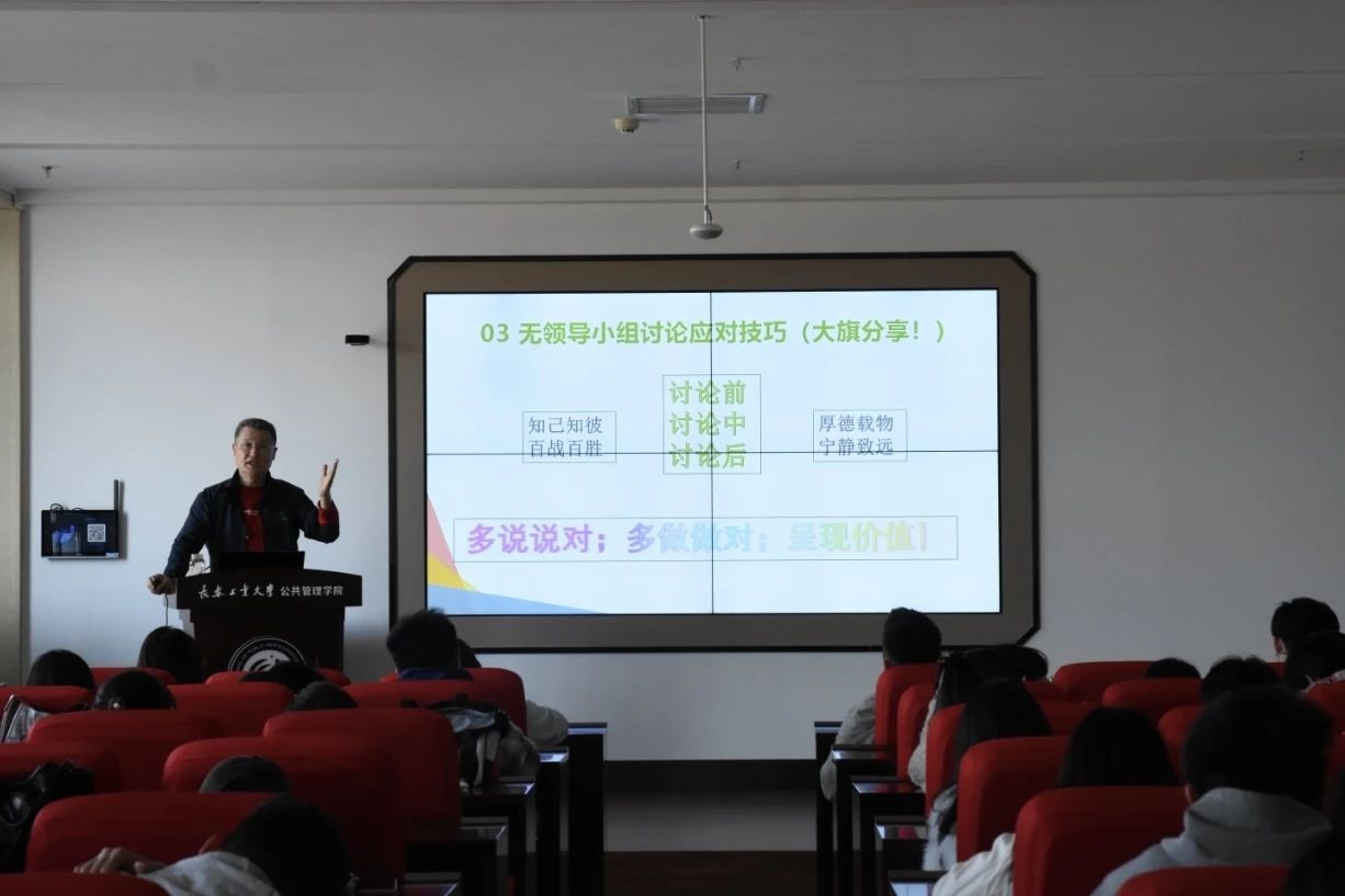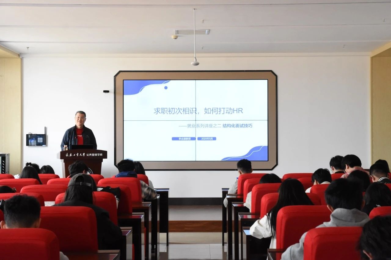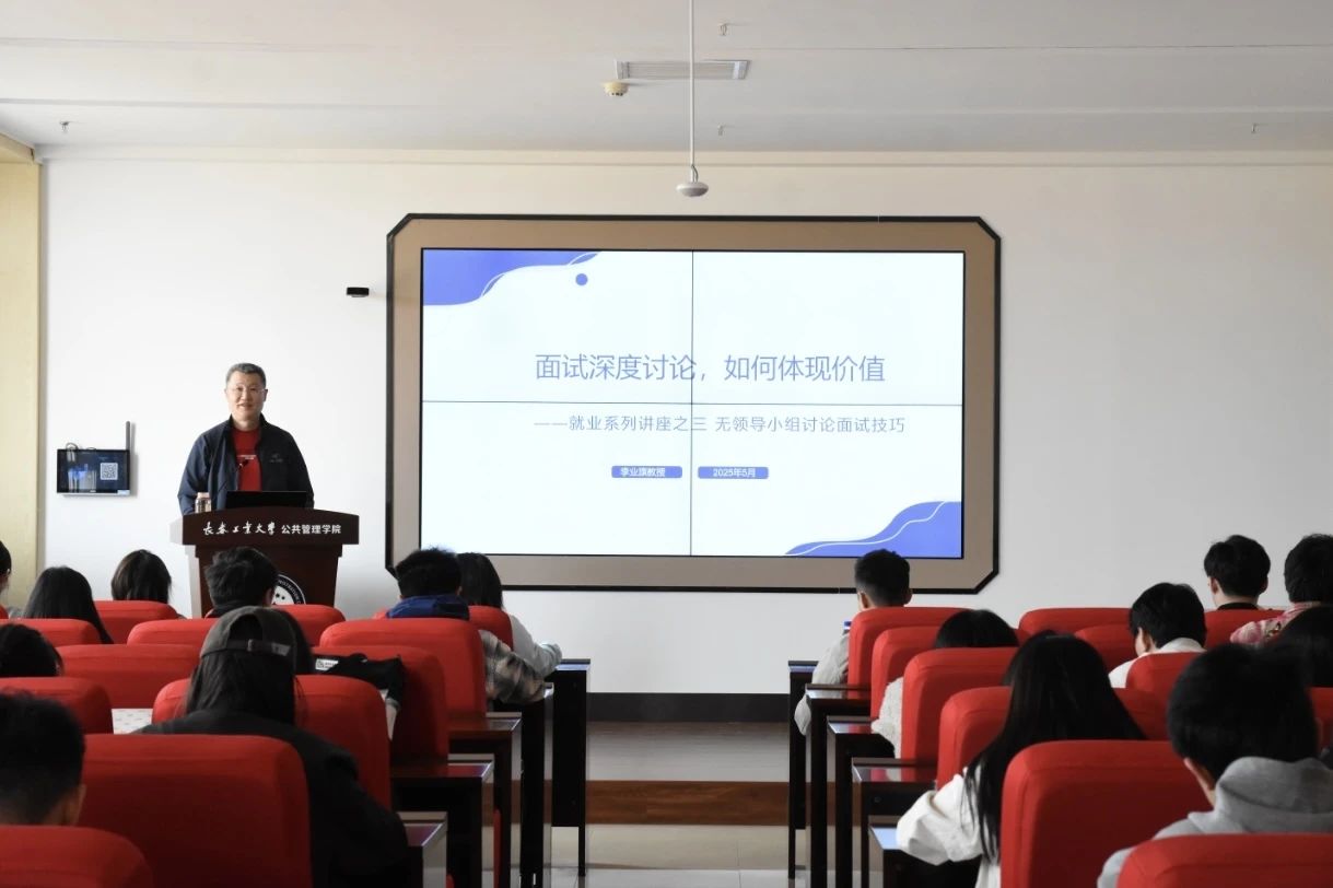 2025年5月7日,bat365中文官方网站紧扣“我为高质量发展做什么”主题,行政管理和公共事业管理联合党支部李业旗教授于北湖东校区主楼301教室为bat365官网2022级和研究生党支部学生党员开展就业主题沙龙系列讲座(第二讲)。李业旗教授围绕结构化面试与无领导小组讨论两大核心模块展开专题指导,通过系统性教学与实战案例分析,切实提升学生就业竞争力,推动党建工作与就业指导深度融合。