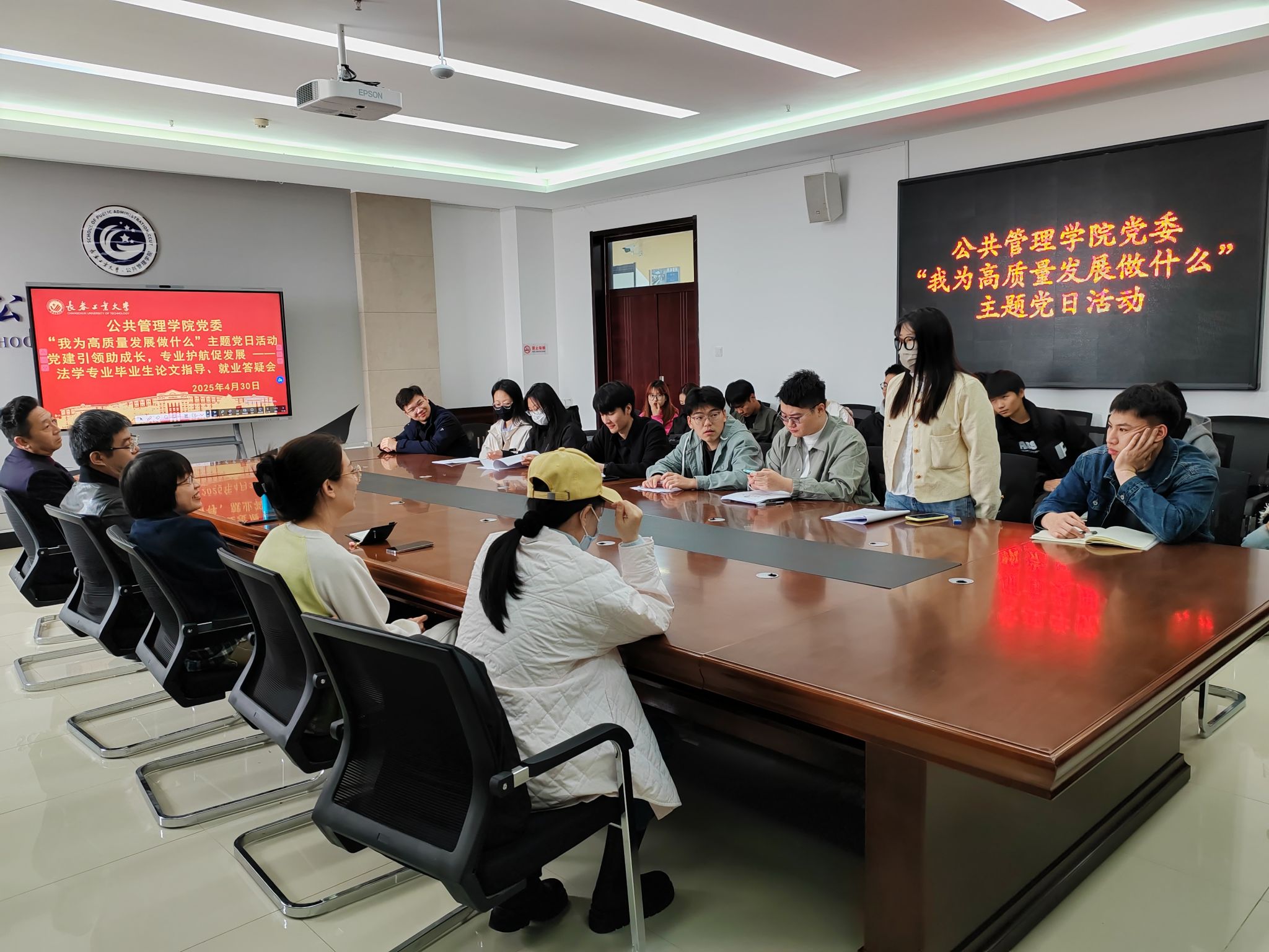 (通讯员:崔元慧)2025年4月30日,bat365中文官方网站党委紧扣“我为高质量发展做什么”主题,组织法学系党支部在北湖东区401会议室开展法学专业毕业生论文指导与就业答疑会。学院副院长冯娜、法学系党支部书记郭千钰、系主任宋浩及党员教师代表张雪峰、刘备,与法学专业本、研究生毕业生代表面对面交流,围绕毕业论文指导、就业政策解读等热点问题展开深度研讨,以实际行动践行党建与专业建设双融双促。