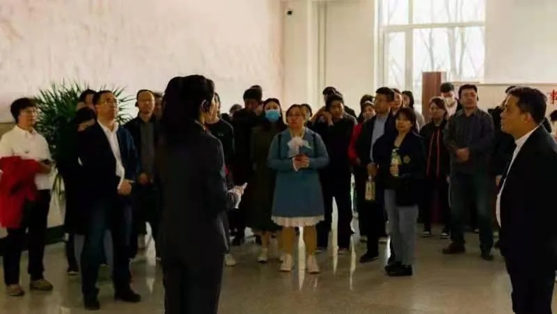全体教职工集合于主楼大厅,伴着bat365官网学生讲解员徐洋洋的讲解,开始四史学习的旅程。随着讲解员,回顾了毛泽东思想,邓小平理论,“三个代表”重要思想,科学发展观;习近平新时代中国特色社会主义思想。