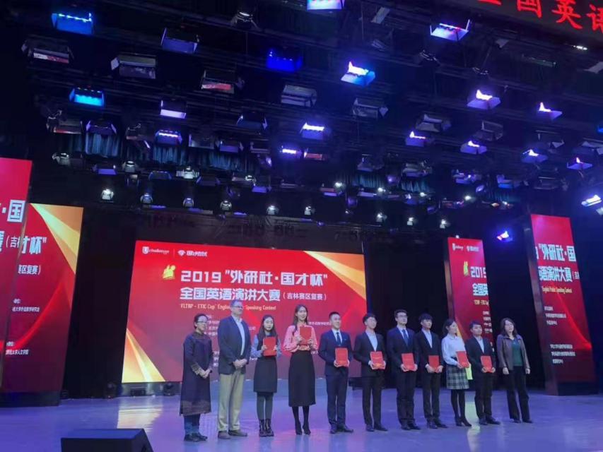 2019“外研社·国才杯”全国英语演讲大赛是由外语教学与研究出版社和教育部高等学校大学外语教学指导委员会、教育部高等学校英语专业教学指导分委员会联合举办的公益大赛。来自我省40余所高校的42名选手参加了吉林赛区的比赛。比赛分为定题演讲、即兴演讲、回答评委提问等环节。易龙同学凭借饱满的精神状态、出色的英语能力赢得评委的一致认可荣获一等奖。