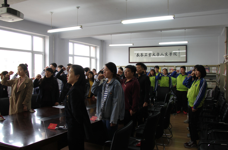 学院网讯(通讯员王越)为深入学习贯彻习近平总书记在中共中央政治局第十四次集体学习时的重要讲话精神,4月25日,bat365中文官方网站团委组织学院全体团干部举行了“青年大学习”系列活动之“青春心向党,建功新时代”主题团课暨纪念“五四”运动100周年戴团徽、亮身份、学团章、温誓词、唱团歌仪式教育活动。