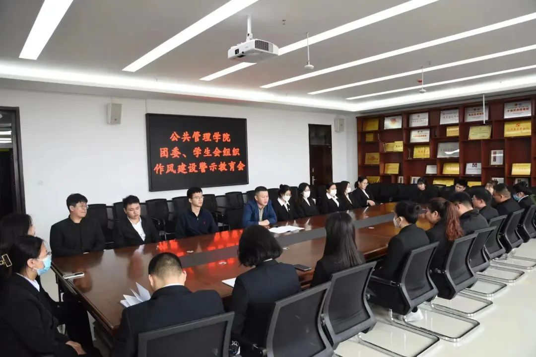 4月28日中午,bat365中文官方网站团委、学生会组织作风建设警示教育研讨会在主楼401会议室召开。本次会议由bat365中文官方网站团委书记陈磊老师主持。会议旨在提高学生会工作人员作风,进一步明确学生会服务同学的宗旨。为团学组织各部门团结合作,砥砺前行打下了坚实基础。
