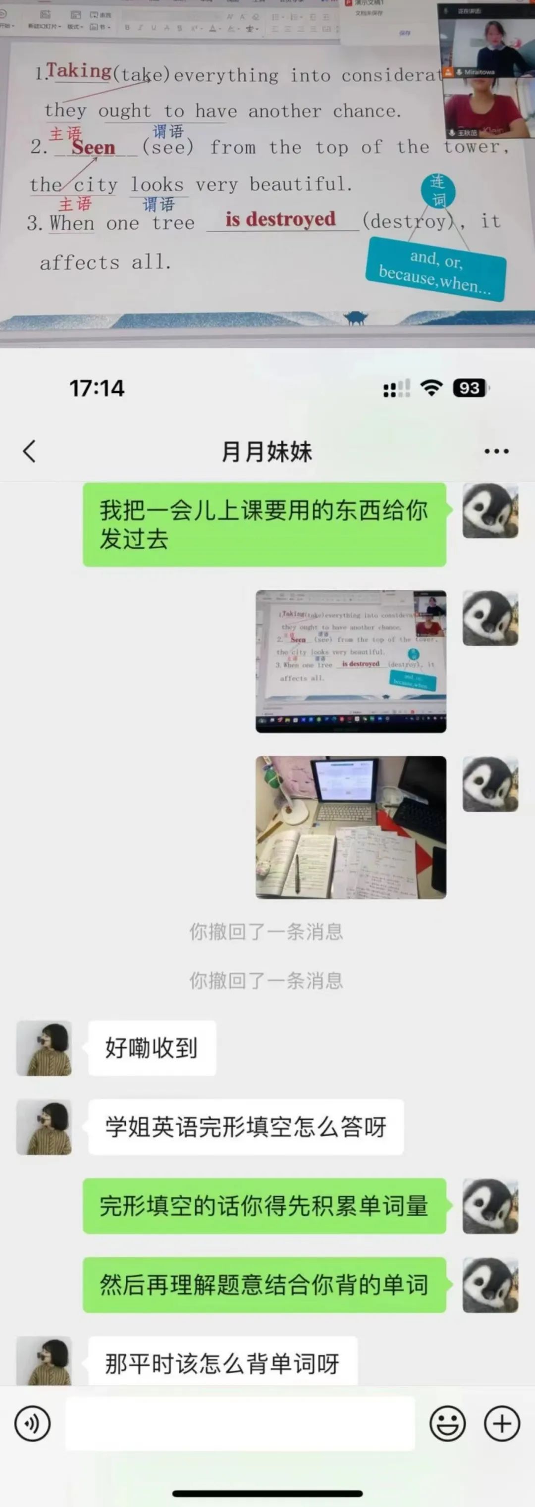 在此次“学伴+”的活动中,我辅导了一位在英语和语文方面基础知识薄弱的高二学生。根据实际情况,我制定了专门的学习计划并致力于提高学妹的理解问题能力。通过此次伴学,我教会了学妹如何去更高效的背英语单词。学好英语不仅仅需要积累大量的单词,还需要懂得一些做阅读的技巧方法。在语文方面,我告诉学妹背诵的古诗词要彻底落实,在上课期间我也反复的考察她的背诵情况。