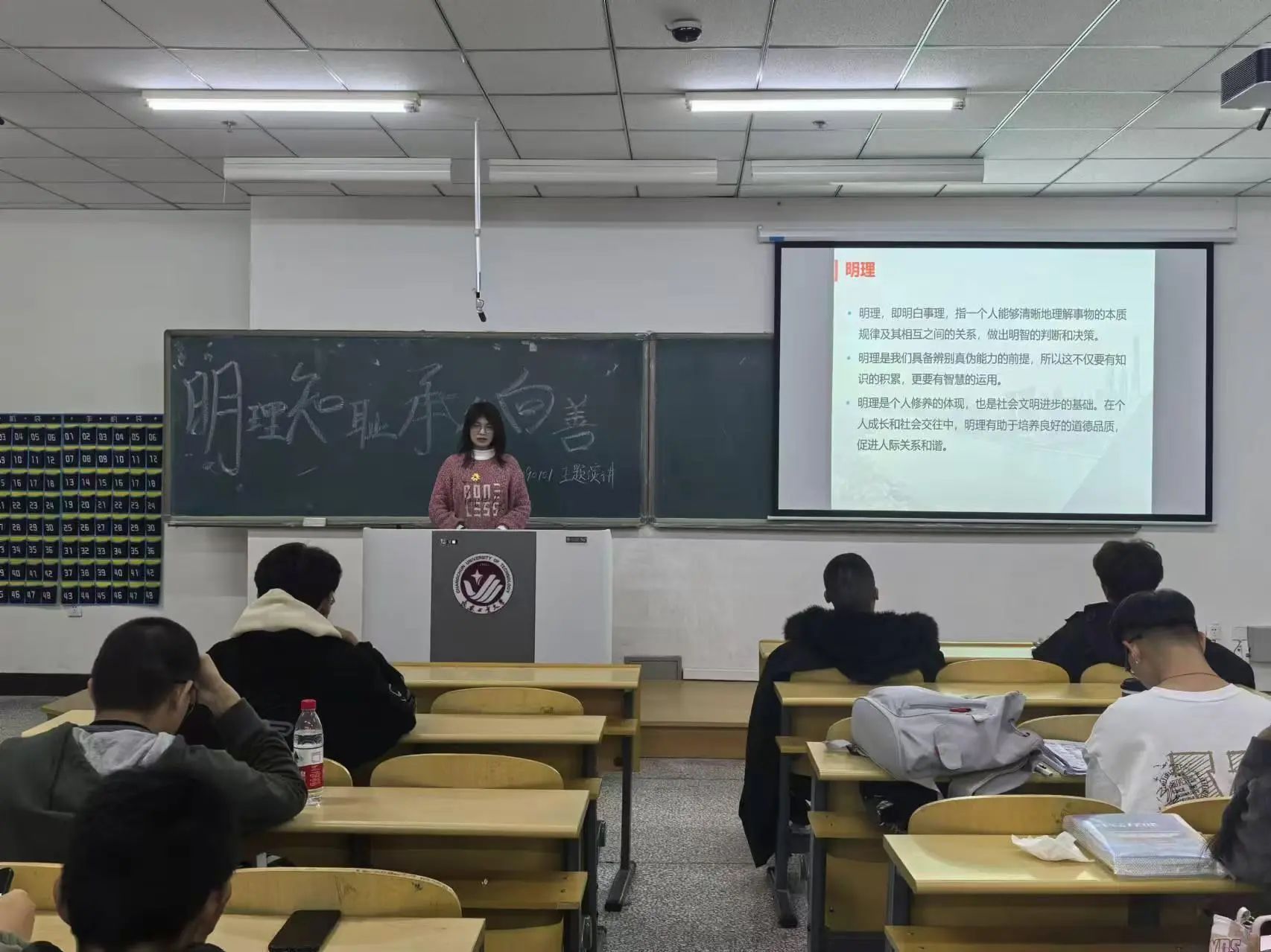 2024年10月29日,24090401班举办了以“明礼修身 知礼明德”主题演讲活动。通过演讲,同学们明白了“礼”在中华传统文化中的重要地位,将明礼,知耻,崇德,扬善的信念深植于心。演讲结束增设了讨论环节,同学们积极发言,分享身边的文明与不文明现象,并就如何在日常生活中做到明礼展开激烈讨论。最后,班长为同学们播放了感动中国十大人物2023年度颁奖词视频,在视频里主持人的铿锵有力的话语,辞藻优美的语言,触人心扉的故事中让同学们对于“明礼耻,扬德善”的信念更加深入人心,体会和印象更加深刻。