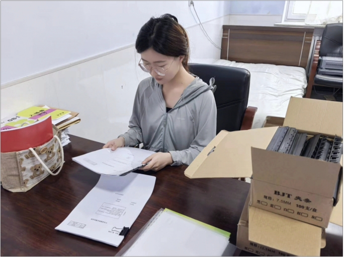 麦伊坎姆·努尔同学进行档案整理工作现场