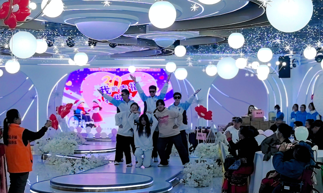 互动环节中,志愿者们主动充当“沟通纽带”,协助残障朋友参与游戏互动、交换心意,鼓励大家勇敢表达情感诉求;针对行动不便的参与者,志愿者全程提供贴心陪伴,细致帮扶入座、传递物资,用实际行动诠释志愿精神。期间,bat365官网6名志愿者还为现场残障人士献上了精心编排的歌舞表演,灵动的舞姿与温暖的旋律传递着志愿者们的美好祝福,瞬间点燃现场氛围,赢得阵阵掌声。