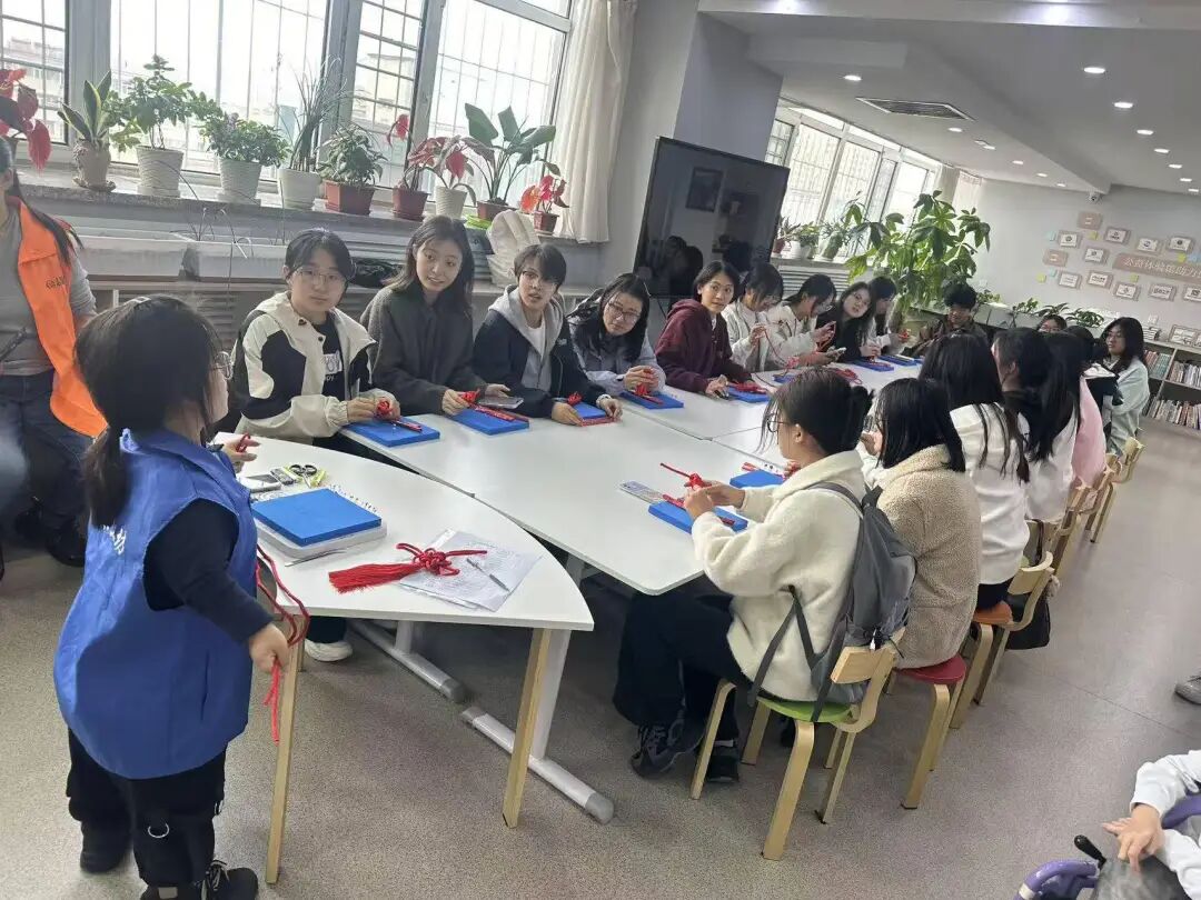 在专业老师的指导下,同学们从最基础的“平结”学起:指尖穿梭于红绳之间,反复摸索绳结的松紧力度与编织逻辑。当一个个完整的中国结在手中成型,同学们切实收获了成功的喜悦。