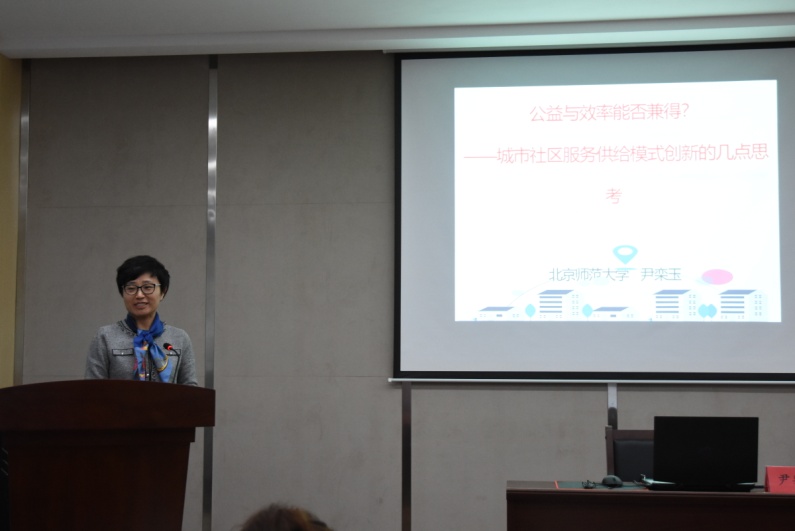 公共管理系“新时代公共管理理论与实践前沿系列名家论坛”的第一场讲座,特邀了来自北京师范大学尹栾玉教授到bat365中文官方网站进行“公益与效率能否兼得?——城市社区服务供给模式创新的几点思考”的学术讲座。