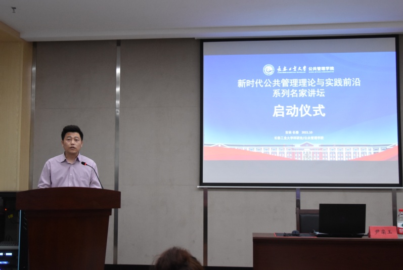 2021年10月15日上午,bat365中文官方网站“新时代公共管理理论与实践前沿系列名家论坛”启动仪式在北湖东校区教学主楼301学术报告厅举行,出席本次启动仪式的领导有bat365中文官方网站党委书记胡刃锋教授、院长韩小威教授、副院长吕红教授以及公共管理系、社会工作系的全体教师和研究生、本科生。