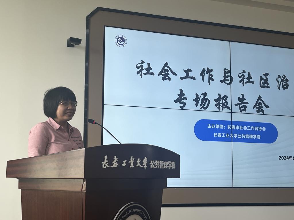 公共管理学院副院长冯娜发言中表示:社工系主打实务人才培养,社会实践,产教融合,多年来离不开长春社协的支持,离不开社区工作者的帮助,长春工大将继续与协会联手,深入基层,躬耕“田野”,共谋“街校社”发展,共创服务品牌,共谱长春善治新篇。