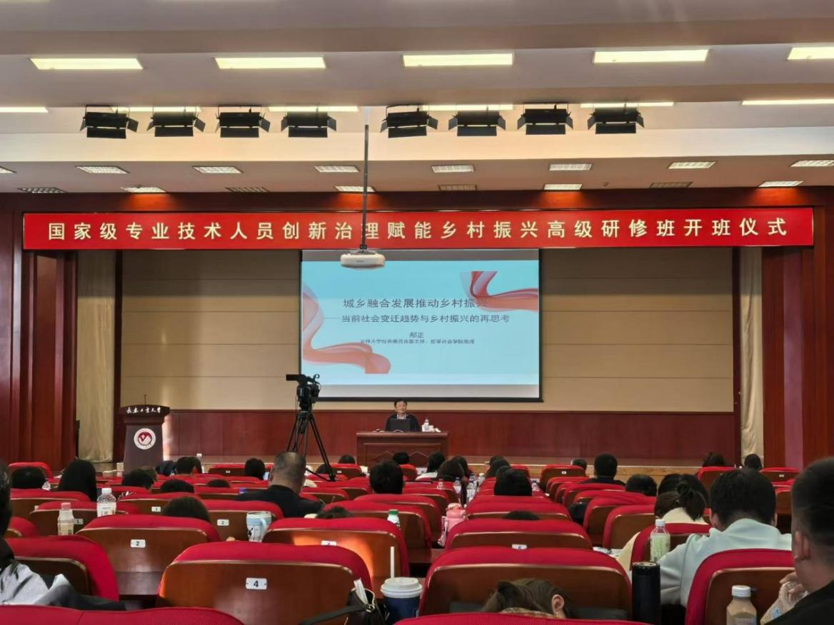 本网讯(通讯员 汤道化)10月15日下午,国家级专业技术人员“创新治理赋能乡村振兴”高级研修班活动在我校南湖校区学术报告厅继续进行。第四场主讲嘉宾特邀吉林大学邴正教授,他为学员们作了题为“城乡融合发展推动乡村振兴——当前社会变迁趋势与乡村振兴的再思考”的讲座。bat365中文官方网站副院长吕红教授主持讲座。学院党委书记于洪、院长韩小威教授、副院长冯娜副教授及百余名师生参加讲座。