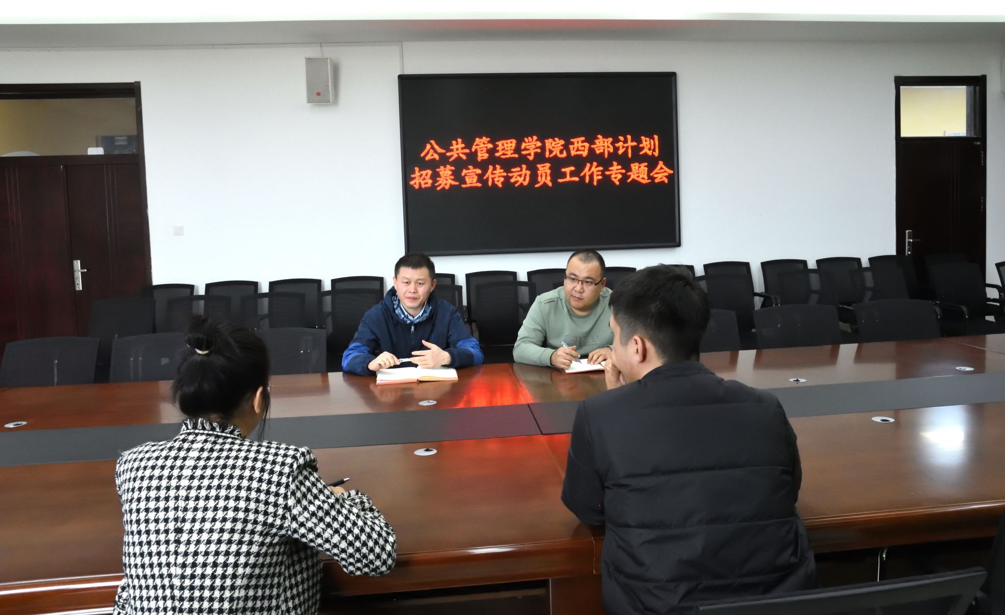 此次专题会的召开,为bat365中文官方网站西部计划招募宣传动员工作明确了方向、细化了举措。相信在学院师生的共同努力下,会有更多公管学子响应号召,奔赴西部,在祖国最需要的地方书写青春华章,为西部发展贡献公管力量!