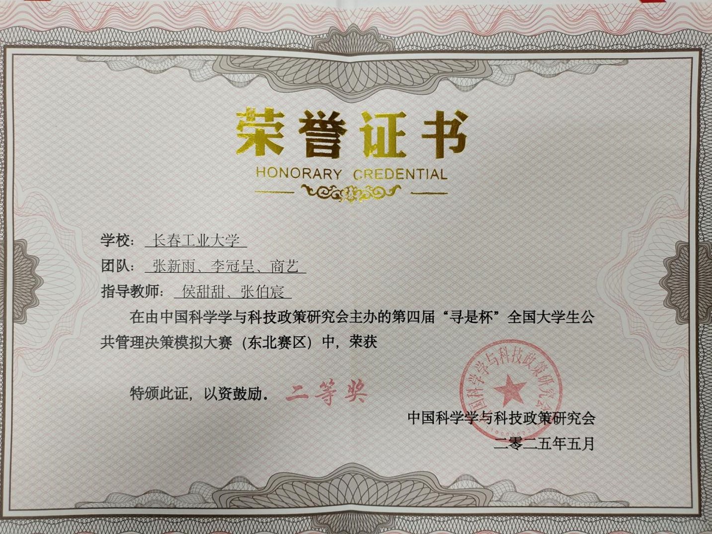 bat365中文官方网站学生荣获第四届“寻是杯”全国大学生公共管理决策模拟大赛(东北赛区)二等奖