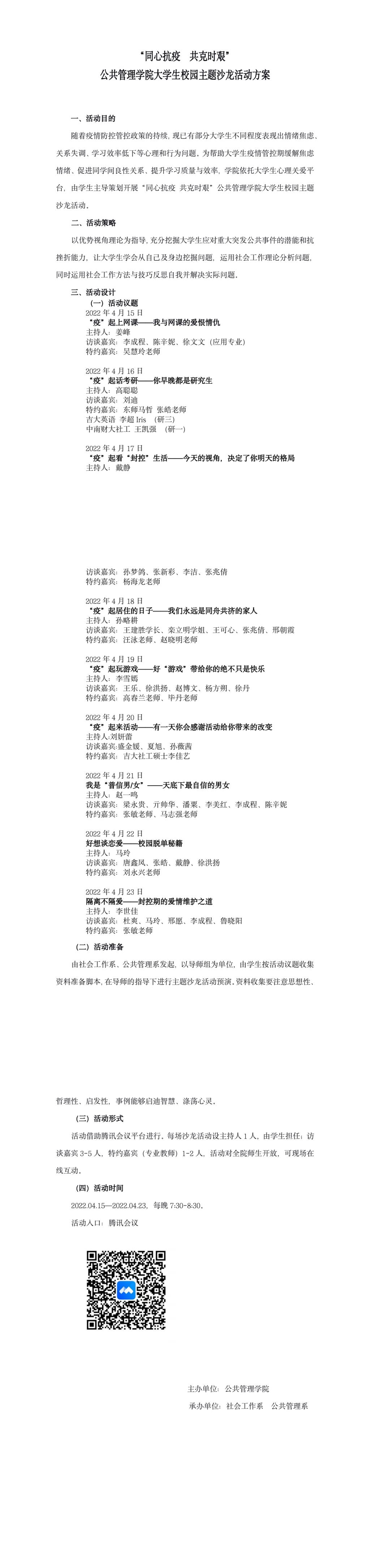 “同心抗疫 共克时艰”--bat365中文官方网站大学生校园主题沙龙活动方案