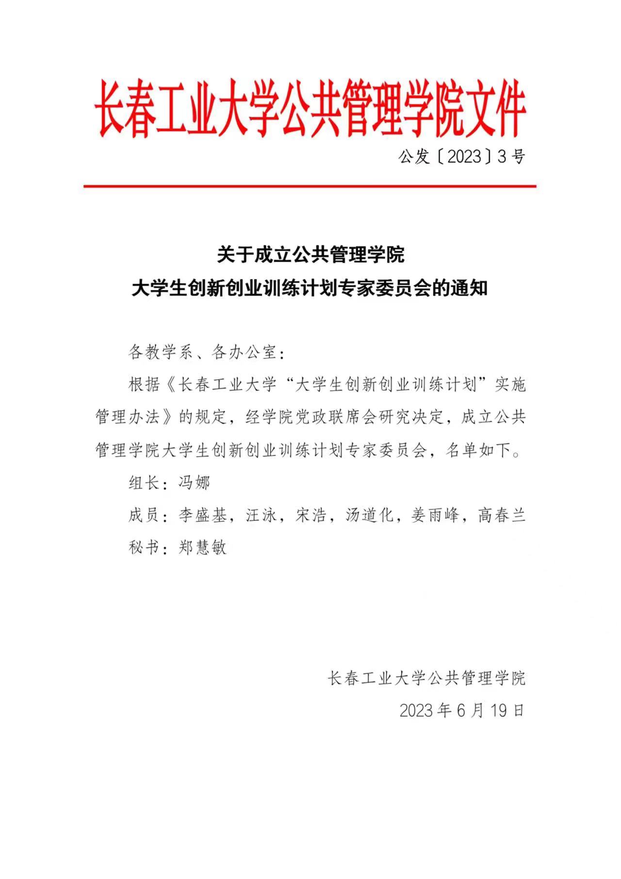 关于成立bat365中文官方网站大学生创新创业训练计划专家委员会的通知