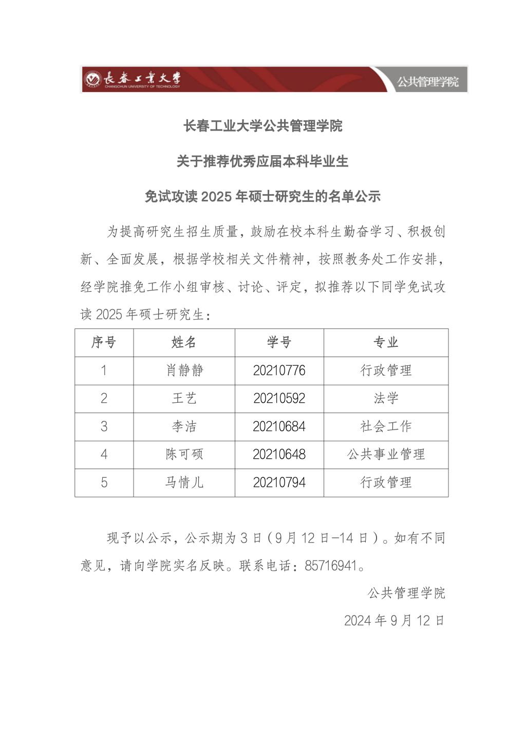 bat365中文官方网站bat365中文官方网站关于推荐优秀应届本科毕业生免试攻读2025年硕士研究生的名单公示