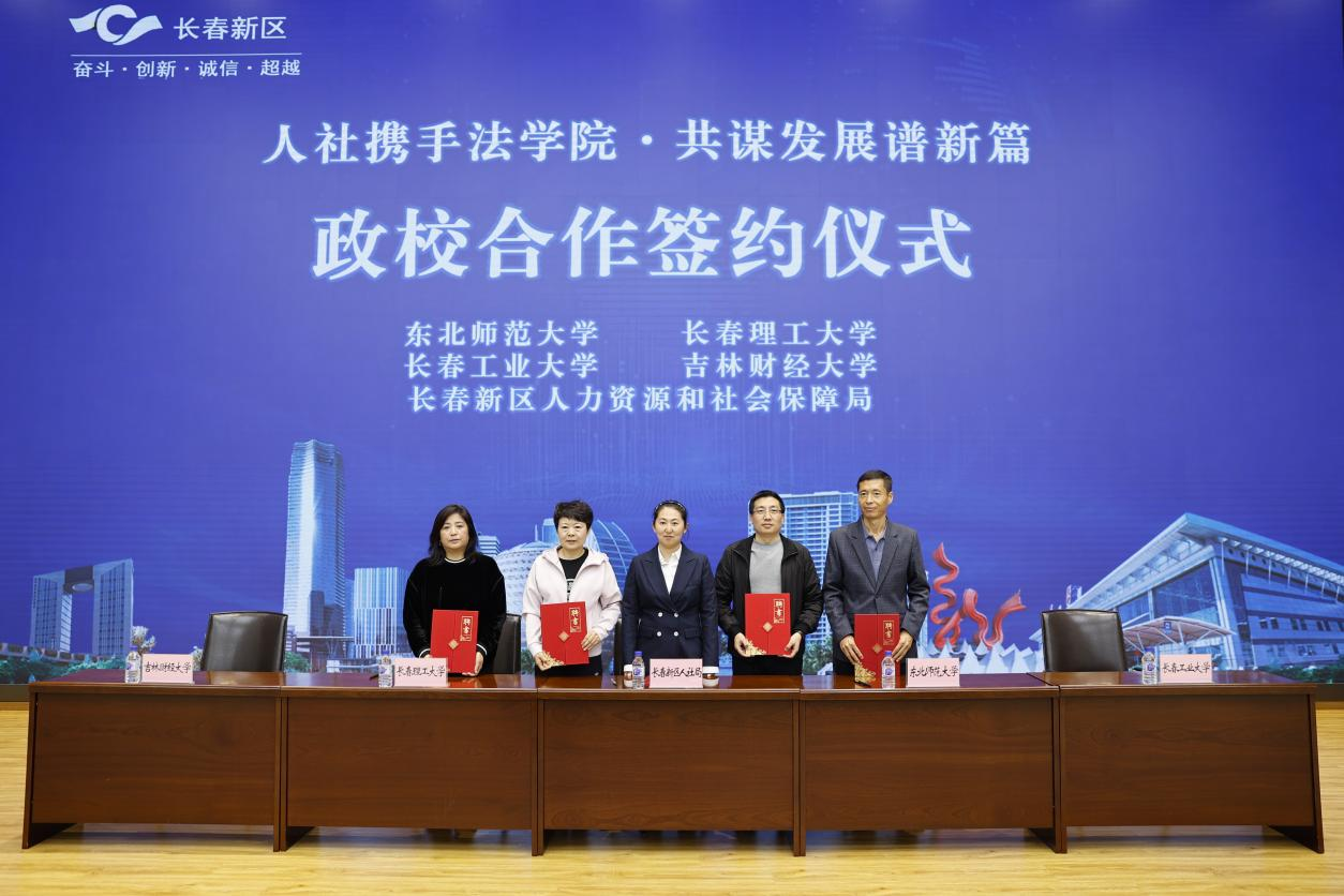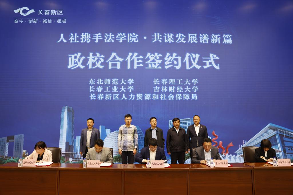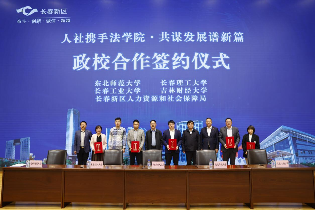 为深入学习贯彻党的二十大精神和习近平法治思想,进一步推进法学学科专业发展与地方法治建设的深度融合,2023年10月12日,bat365中文官方网站bat365中文官方网站等四所院校与长春新区人力资源与社会保障局签订政校合作框架协议。