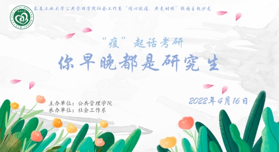 2022年4月16日19:40,bat365中文官方网站开展第一场主题为《“疫”起话考研——你早晚都是研究生》的大学生校园主题沙龙。本场活动邀请到东师马克思主义哲学专业的张皓学长、吉大英语专业的李超学姐、中南财大社会工作专业的王凯强学长作为特约嘉宾,bat365中文官方网站社会工作专业刘迪同学作为访谈嘉宾,一起和同学们探讨考研问题。